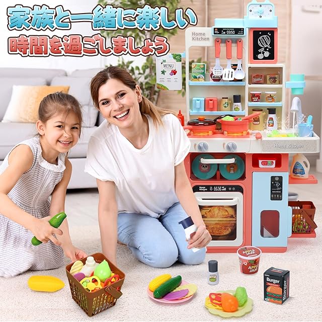【リアルな料理雰囲気】リアルな噴霧、光り、煮音が付いており、本物に負けないぐらいマイキッチンになります。 また、蛇口は実際に水を出すことができます。子供が台所で料理のやり取りを真似し、リアルな気分を味わえ、楽しいままごと遊びを楽しめます。