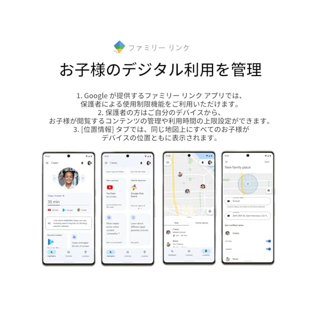 (保護者制限 搭載)1日の利用時間を15分単位で設定可能。使いすぎが防げるから安心してお子様に渡せます。スマートフォンやパソコン・タブレットから、お子様が使っているコンテンツ内容や利用時間を離れたところからでも簡単に確認できます。子どもの成長や興味が分かって新たな発見もOKです。年齢フィルターを使用すれば、お子様の年齢に合った適切なコンテンツが自動表示。年齢フィルターはいつでも変更できるので、進級のタイミングなど、お子様の成長に合わせて長く楽しむことができます。PSE、CE、FCC、TELEC認証済み。安全、安心、認証。