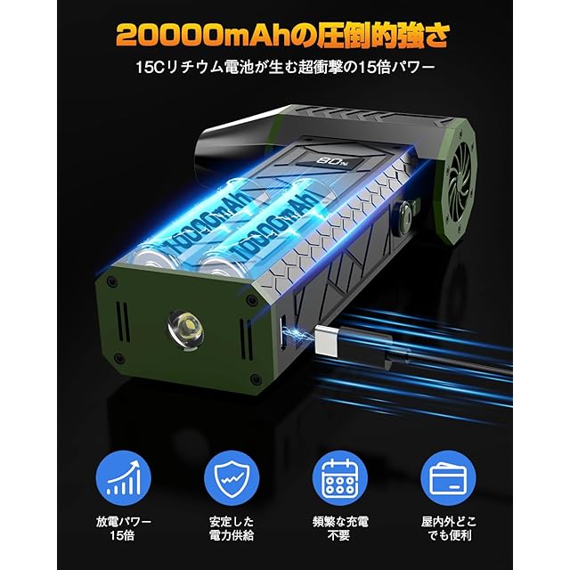 【15倍放電パワーで10000mAhの圧倒的強さ】✅✅■15Cリチウム電池が実現する15倍の放電パワーで、瞬時に強力な風速を生み出し、ホコリや汚れを一掃!10000mAhの大容量バッテリーと組み合わせることで、圧倒的なパワーと安定した電力供給を実現。長時間、途切れることなくパワフルに動作し、充電の心配も一切不要!屋内でもアウトドアでも、どんな場所・シーンでも、これ一本で完璧に対応。繰り返し充電の手間なしで、効率的で便利な日常を手に入れよう。