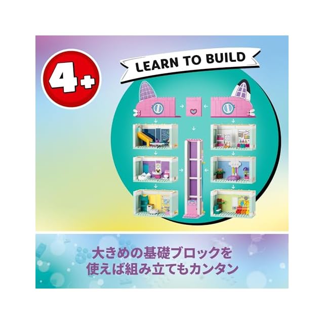 お部屋を探検 – レゴ ギャビーのドールハウス(10788)は、ドリームワークス『ギャビーのドールハウス』のネコちゃんたちが住む8つの部屋を再現して、アニメみたいなごっこ遊びを楽しめます(対象年齢:4才以上)