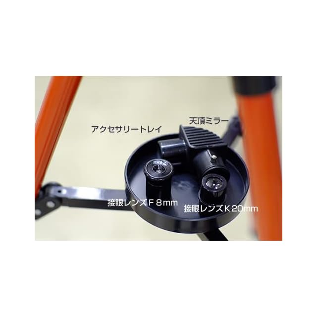 天体望遠鏡本体、架台・三脚、接眼レンズ、天頂ミラーのセット。