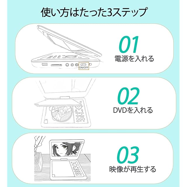 「色鮮やかな映像を楽しむ」Surfola ポータブルDVDプレーヤーは、内蔵充電池により、4〜6時間の連続再生が可能です。リージョンフリー機能で地域制限がなく、世界中のDVDを楽しむことができます。また、USBやSDカードとの同期機能も搭載しており、外部メディアからの再生も簡単です。ポータブルカーDVDプレーヤーとしてもご利用いただけます。