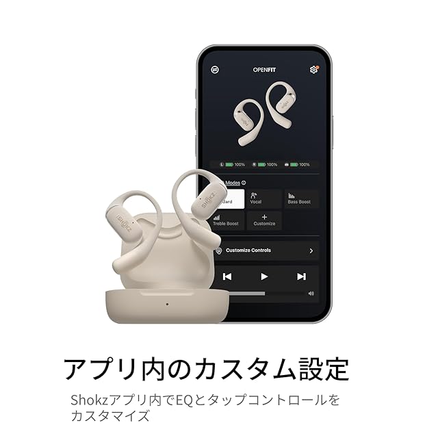 Shokz (ショックス) オープンイヤー イヤホン OpenFit ワイヤレスイヤホン 【最大28時間利用可能 / 究極のフィット感/Bluetooth 5.2 / マイク付き / IP54防水性能】 パワフルな低音 耳を塞がない 簡単操作 アプリ対応 ベージュ
