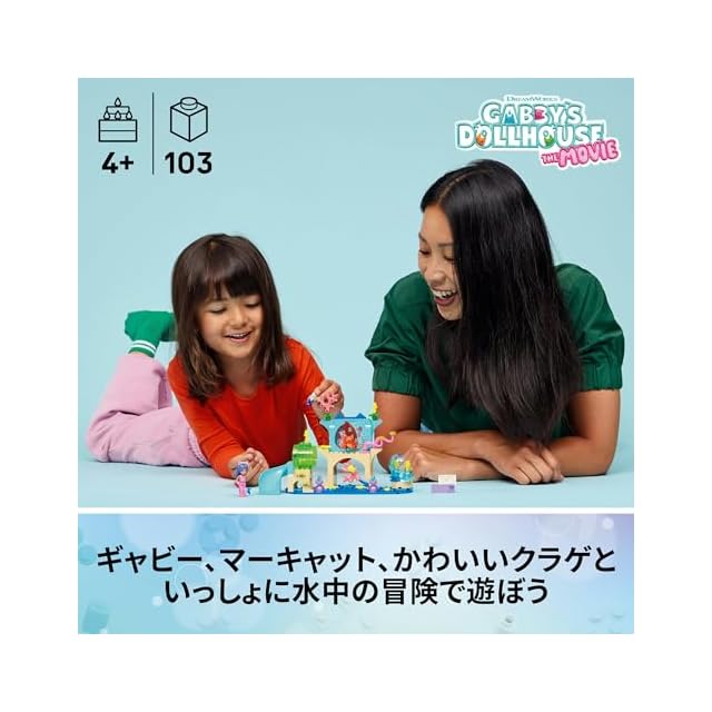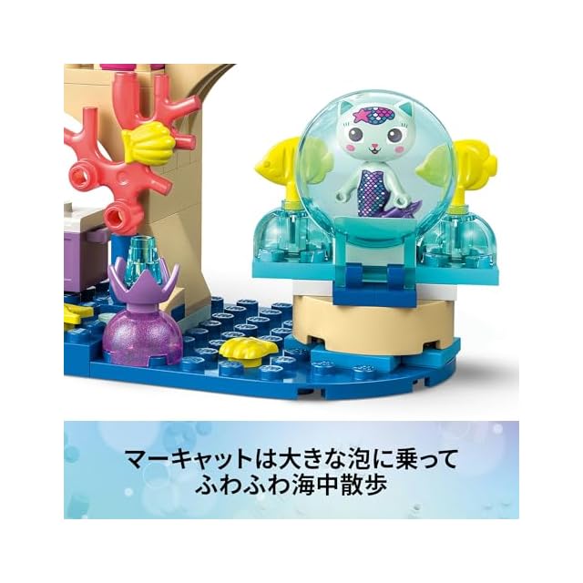 『Gabby’s Dollhouse: The Movie (原題)』がテーマのおもちゃ – マーメイドになったギャビーのミニドールフィギュア、マーキャットとクラゲさんのフィギュア、組み立てをシンプルにする基礎ブロックが付属しています