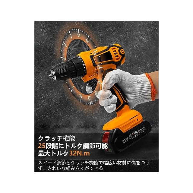商品名:電動ドライバー ドリル 21v 1500mAh バッテリー2個付き (マキタ バッテリーに対応) 25段階トルク調節 最大32N.m スピード調節機能 正逆転切替 穴あけ 電動工具セット 21ドリル/收纳ケース付き DIY初心者でも使いやすい