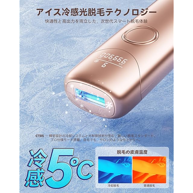 【サロン級IPL光技術&瞬間5℃冷却&無痛脱毛】脱毛器は、波長600~1200nmのサロン級IPL光技術を採用し、さらにサファイア冷却技術を組み合わせることで、瞬時に温度を5℃まで冷却し、無痛脱毛を実現します。男性のヒゲやVIOエリアの脱毛にも簡単に対応可能です。