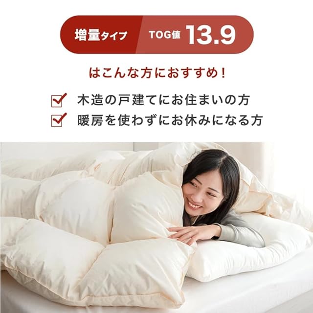 ※羽毛は天然素材のため、無臭ではございません。開梱直後や温度・湿度等の環境等により臭いを感じる場合がございますので、開封直後には風通しの良い場所での十分な陰干し等をお勧めいたします。なお、天然羽毛の臭いのため人体に害はございませんのでご安心ください。※2025年10月27日より側地が防ダニ生地に変更となりました。