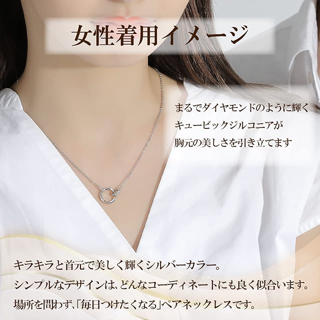 【 商品詳細 】メンズネックレス:チェーンの長さ 50cm、アジャスター 5cm、重量4g、レディースネックレス:チェーンの長さ 40cm、アジャスター 5cm、重量3g、共通事項 素材:スターリングシルバー、キュービックジルコニア、付属品:Nicoiro 専用ケース×2、お手入れ用クロス×2、アクセサリーポーチ×2、メッセージカード×1、ギフトバッグ×1、シルバーアクセサリーガイドブック
