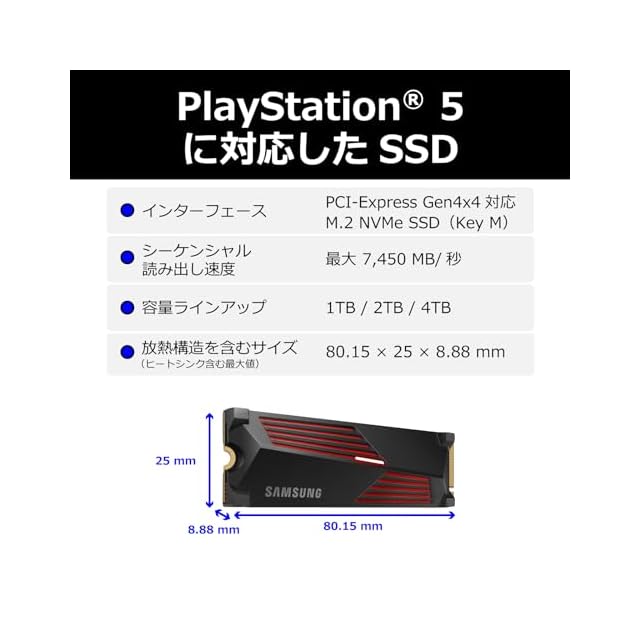 商品名:Samsung 990 PRO ヒートシンクモデル 2TB PS5動作確認済み PCIe 4.0(最大転送速度 7,450MB/秒) NVMe M.2 MZ-V9P2T0G-IT/EC 国内正規品