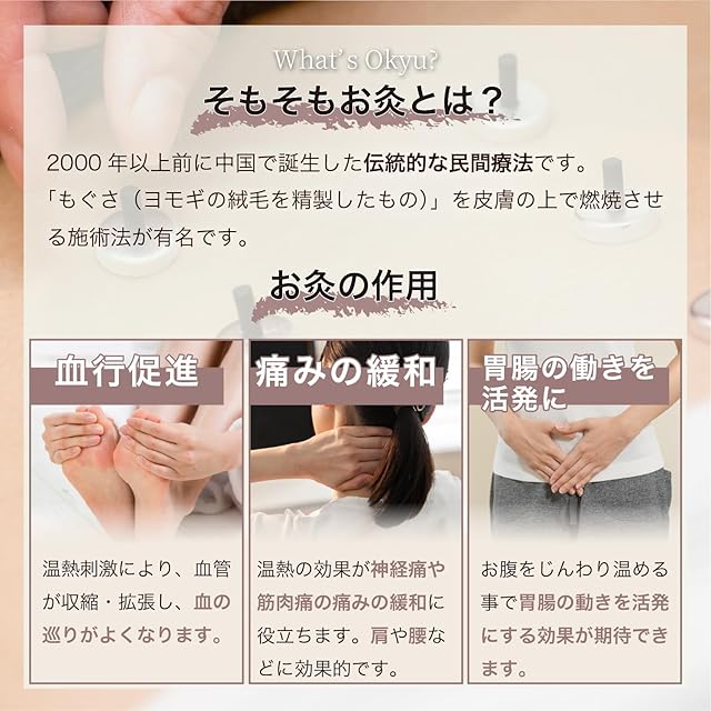 【プチ不調に簡単セルフ灸】効果:疲労回復、血行を良くする、筋肉の疲れをとる、筋肉のこりをほぐす、神経痛・筋肉痛の痛みの緩解、胃腸の働きを活発にする