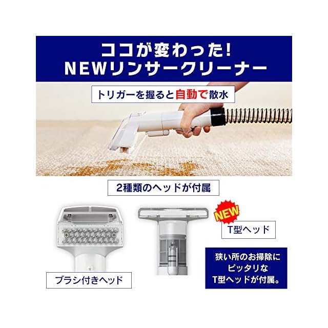 商品名:アイリスオーヤマ リンサークリーナー 自動ポンプ式モデル 【テレビ放映商品】 染み抜き 布洗浄機 ブラシヘッド&T字型ヘッド付属 楽ちん給水口 RNS-P10-W ホワイト