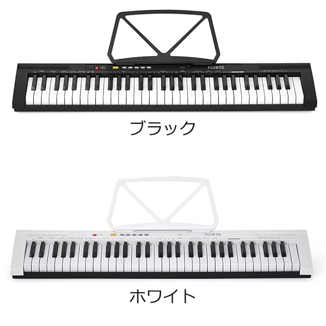 商品名:TORTE トルテ 電子キーボード 61鍵盤 日本語表記 300ボイス 軽量スリム設計 TSDK-61/BK 初心者向け 教本付きライトセット (ヘッドフォン/教則本/譜面立て/電源アダプター/マイク付き)
