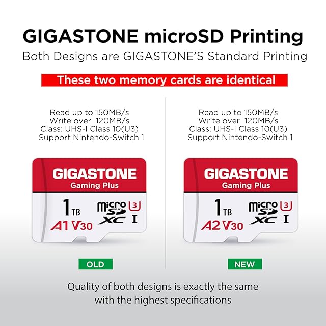 【5年】GIGASTONE マイクロsdカード 1TB Gaming Plus microSDXC UHS-I A1 V30 U3 C10 150MB/s 高速 1TB Full HD & 4K UHD動画 GIGASTONE 国内正規品 SDアダプター1枚付き【Nintendo Switch 1動作確認済】