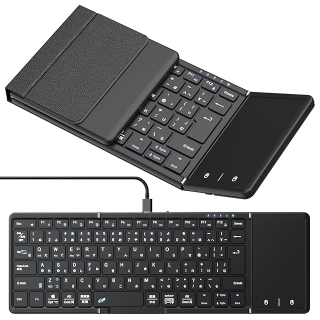 キーボード ワイヤレス 折り畳み式 Bluetooth &有線 モバイルキーボード フルサイズ タッチパッド
