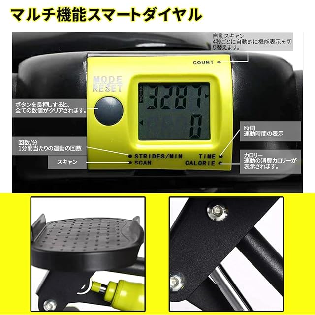 運動目安がひと目でわかるメーター付き !時間・回数・カロリー・累積回数が表示できます。※検品及び配送時の振動により、メーターの数値がカウントされている(0ではない)場合がございますが、未使用品です。あらかじめご了承ください。