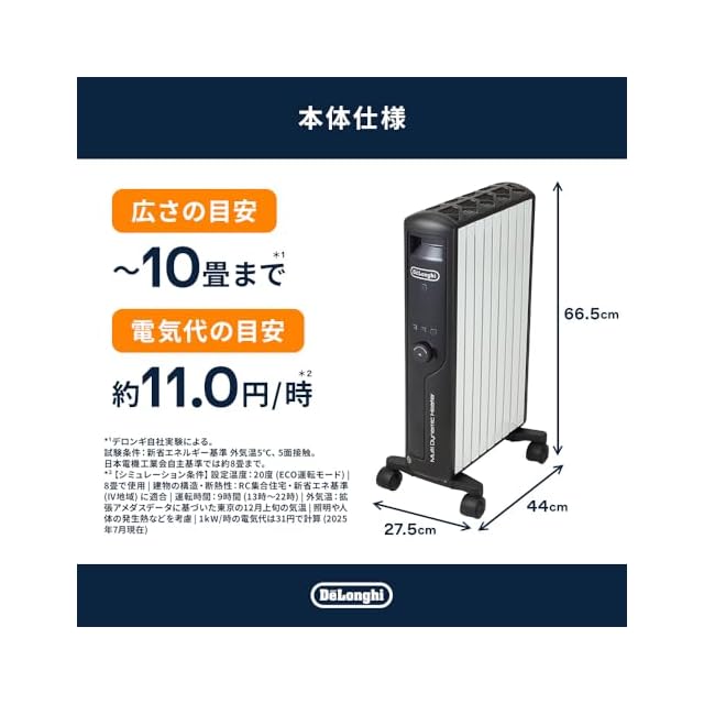 商品名:De'Longhi (デロンギ) マルチダイナミックヒーター MDHU12-BK 電気ヒーター ゼロ風暖房 節電 直感操作クリックノブ リモコン付き 表面温度約60℃ 節電 [8-10畳] [ピュアホワイト×マットブラック] デロンギファミリー登録で5年