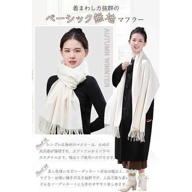[Utukky] カシミヤ マフラー 極上のカシミヤ100% レディース【2024秋冬ニューモデル】 無地 大判 厚手 ふわふわ 内モンゴル産高級カシミヤ ストール スカーフ 春先 プレゼント フリーサイズ 女性 友達 ギフト贈り物 クリスマス 誕生日