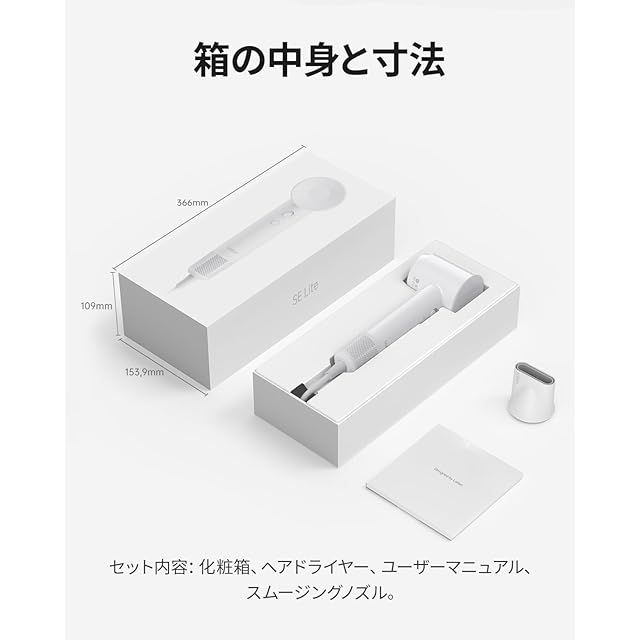 商品名:Laifen ライフェン SE Lite ヘアドライヤー 速乾 大風量高濃度1.5億マイナスイオン 8モード 過熱防止 軽量 コンパクト 持ち運び便利 スナップ式ノズル付き 10万RPM超高速回転 低騒音 静電気除去 温度制御機能付き 家庭用/旅行用 ホワイト