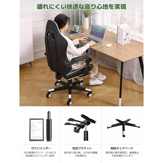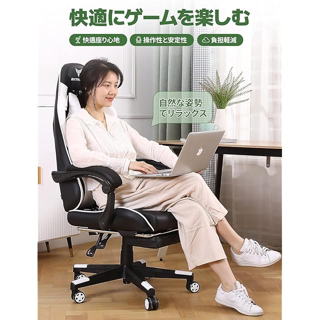 商品名:GXTRACE ゲーミングチェア PCゲーミングチェア ゲーム用チェア リクライニング アームレスト ヘッドレスト ランバーサポート オットマン オフィスチェア デスクチェア パソコンチェア 椅子 (White)