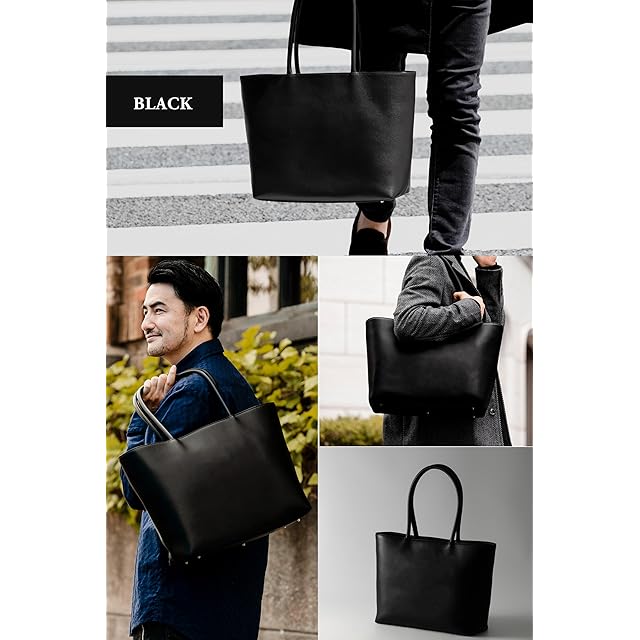 【デザイン】トートバッグのフォルムにこだわりました。凛としたシンプルな形になっています。ビジネスバッグとしてもカジュアルな用途でもご利用いただけます。底鋲付きのため地面に置くこともでき、固い持ち手のため持ち手がヘタることもありません。バッグの外側に装飾やブランドロゴ、文字がないためスッキリとしていて洗練されたトートバックです。
