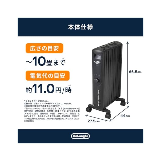 商品名:De'Longhi (デロンギ) マルチダイナミックヒーター MDHU12-PB 電気ヒーター ゼロ風暖房 節電 直感操作クリックノブ リモコン付き 表面温度約60℃ 節電 [8-10畳] [マットブラック] デロンギファミリー登録で5年