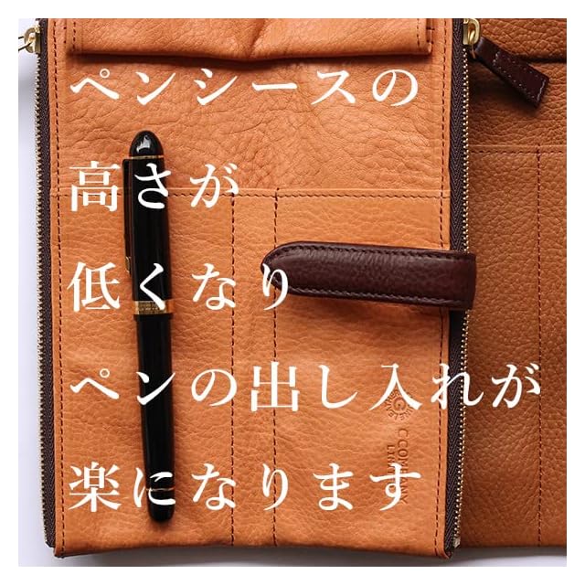 愛用の万年筆やボールペンを大切に保管したい人のための、こだわりのペンケース。 サイズ:約5.5×19×2.5cm ■重量:約75g 素材:牛革(イタリア) ■縫製:中国 仕様:1本差し×2 ファスナーポケット×2