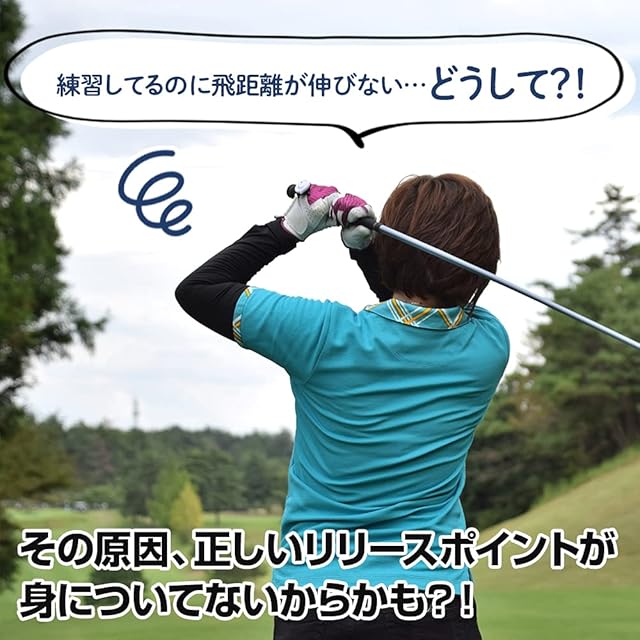 スイングの加速でシャフトが伸びることで、正しいインパクトゾーンを体感できる約41cmのコンパクトなスイング練習器です。