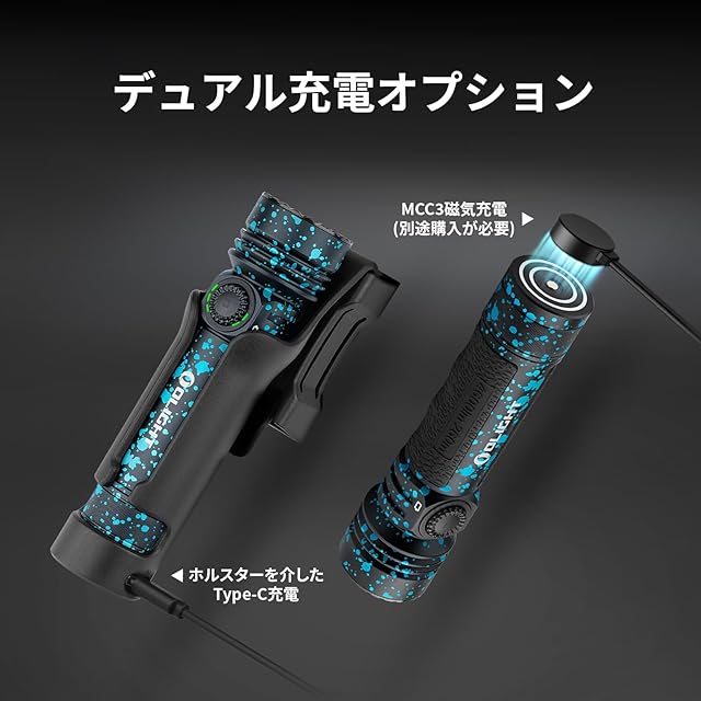 [2種類の充電方式で柔軟に対応] 本製品はType-C充電(ホルスター併用)とMCC3充電(別売)の2つの充電方法をサポート。お客様のライフスタイルや使用シーンに合わせて、最適な充電方法を選べます