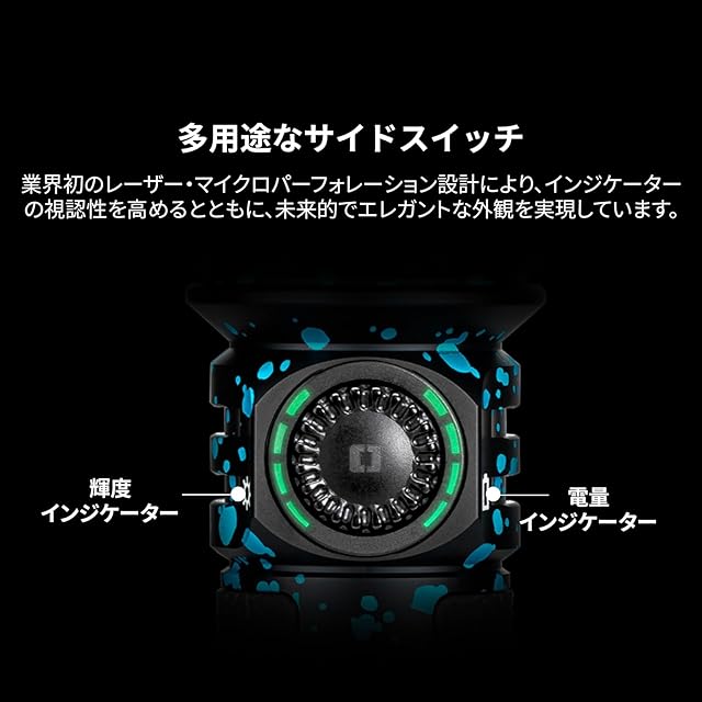 [操作性抜群のユーザーフレンドリー設計] 大型の金属製サイドスイッチを採用し、操作性を大幅に向上。滑らかな無段階調光が可能で、快適な使用感を実現しました。スイッチには明るさとバッテリー残量が表示され、キャンプや登山などのアウトドア活動でも使いやすさを追求しています