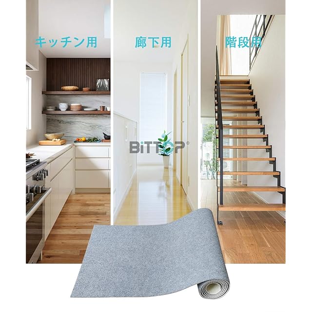 「都合によってカット可能」ハサミで自分の都合に合わせてカットできます。600×68cmのサイズなので、使いたい場所に合わせてサイズを自由にカットし、キッチンだけではなく、廊下、玄関、台所、階段、チェア、床のキズ防止用に役に立ちます。どごでも使え、マルチカーペットです。
