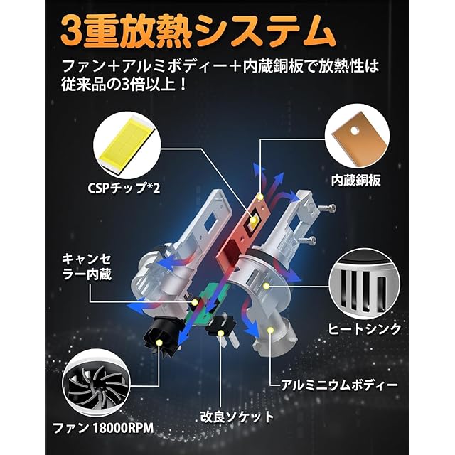 【IP68防水&最新線型ノイズキャンセラー】弊社のh11 led ヘッドライトは堅牢な防水性能を備えています。特殊な材料や密閉構造により、外部からの水や湿気の浸入を防ぎます。これにより、雨天や雪道などの悪天候下でも安心して使用することができます。また、日本車専用キャンセラーを搭載、コンパクトサイズで、複雑な配線なし、取付便利の上で、99%の車種対応できます。業界最新の線型キャンセラーを搭載で、日本のFM周波数帯域に影響がありません、ラジオにノイズを入りません。※ご注意:日本国産車専用キャンセラー、輸入車にはいけません。
