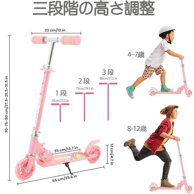 商品名:Tenboom キックボード キックスクーター 子供用 LEDタイヤ スタンド付き キッズ スケーター 折り畳み式 持ち運び便利 収納易い 高さ調整可能 男の子 女の子 誕生日/クリスマス/新年/入学お祝い ギフトに最適 桜色