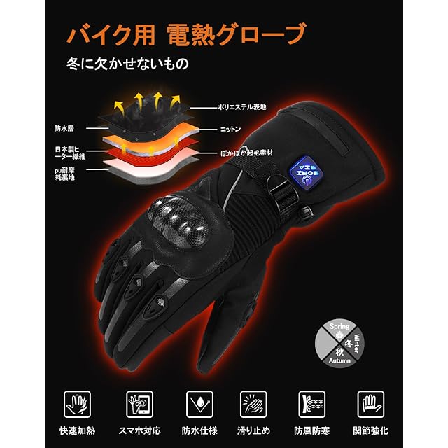 商品名:電熱グローブ バイク用 ヒーターグローブ ヒーター手袋 バッテリー*2 電源コード*1 付き 2種類給電方法 防寒グローブ タッチパネル スマホ対応 3段階温度調節 加熱手袋 バイク用 裏起毛 滑り止め 防水仕様 スポーツ 登山 屋外作業 男女兼用 防寒対策 冬 (ジェットブラック, M)