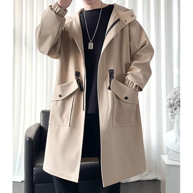 商品名:[foveitaa] コート メンズ 冬服 ロング コート メルトン チェスターコート ウインドブレーカー オーバーサイズ ゆったり 無地 中綿 暖かい 防寒 防風 かっこいい ロング アウター シンプル オシャレ かっこいい 秋冬khaki-M