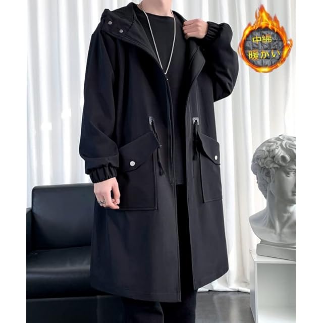商品名:[foveitaa] コート メンズ 冬服 ロング コート メルトン チェスターコート ウインドブレーカー オーバーサイズ ゆったり 無地 中綿 暖かい 防寒 防風 かっこいい ロング アウター シンプル オシャレ かっこいい 秋冬black-L