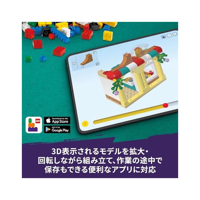 頼もしい助っ人 – 手順がひと目でわかり、お子さまの新しいライフスキルの習得に役立つLEGO Builderアプリ。3D表示されたモデルをズームや回転させながら組み立て、作業途中の状態で保存していつでも再開できるからとっても便利