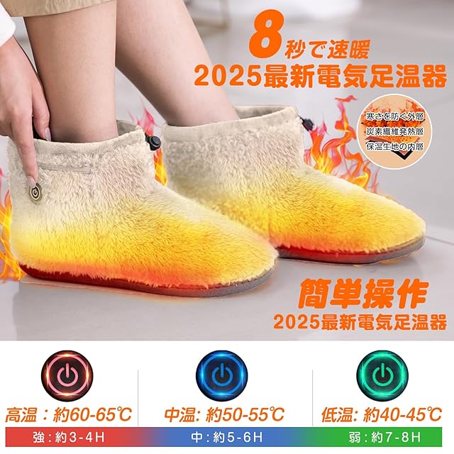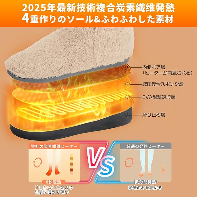 商品名:電気スリッパ フットウォーマー【8秒で温度感知 ダニ退治機能付き!】足温器 左右分離式 コードレス 2個6000mAhモバイルバッテリー付き 足元ヒーター コードレス 日本製ヒーター 加熱スリッパ 8時間使用可能 65℃も達し 3段階温度調節 1.5m延長コード付き 省エネ 男女兼用 洗濯可能 暖房器具 足元暖房 (L(25-27.5cm), ベージュ)