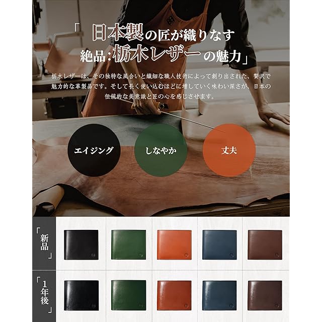 【有名人愛用の一品 栃木レザー 財布】 栃木レザーは、100年以上の歴史を持つ伝統的な製法で、約1ヶ月かけて丁寧に鞣されています。このダブルピット槽製法により、革に負担をかけず自然に仕上げることで、細かい肌目と芯まで浸透したタンニンの成分が特徴です。その結果、美しく堅牢な革が生まれ、長く愛用できる財布 メンズに仕上がります。