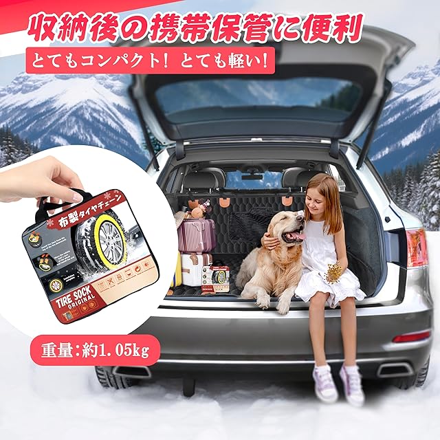 【布製タイヤすべり止め】 布製タイヤカバーは、チェーン規制にも対応しているアイテムで、雪道を安全に走行するための頼もしい助けとなります。