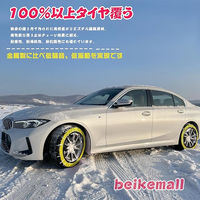 BEIKEMALL タイヤチェーン 布製 非金属 軽自動車 チェーン 簡単装着 ジャッキアップ不要 285/75R16 265/70R17 275/65R17 245/70R18 265/60R20 冬雪 雪道 凍結 タイヤ 滑り止め KE75