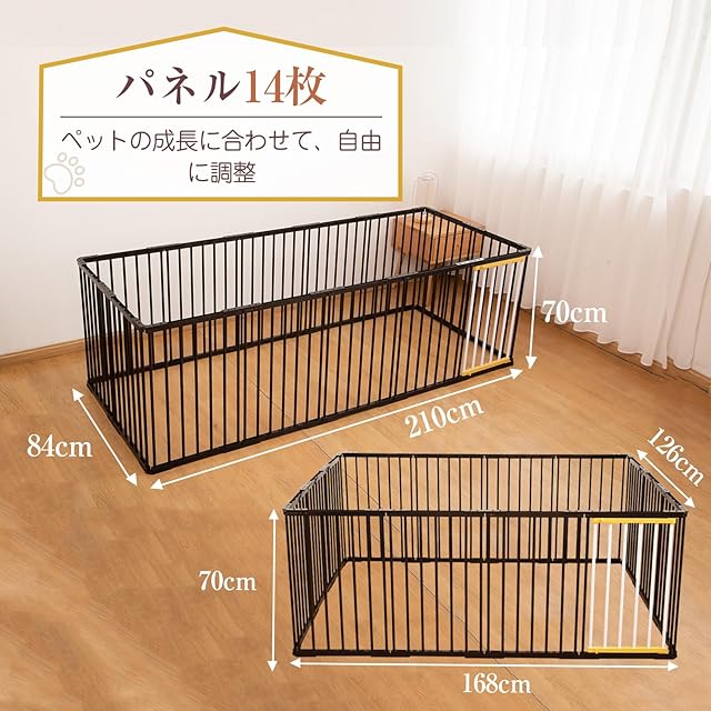 商品名:PETTOM ペットサークル 犬 サークルケージ 犬ゲージ 犬ケージ DIY 12枚 16枚 接続式 簡単組み立て 工具不要 折りたたみ 犬用 多頭 広げる (黒い14枚)