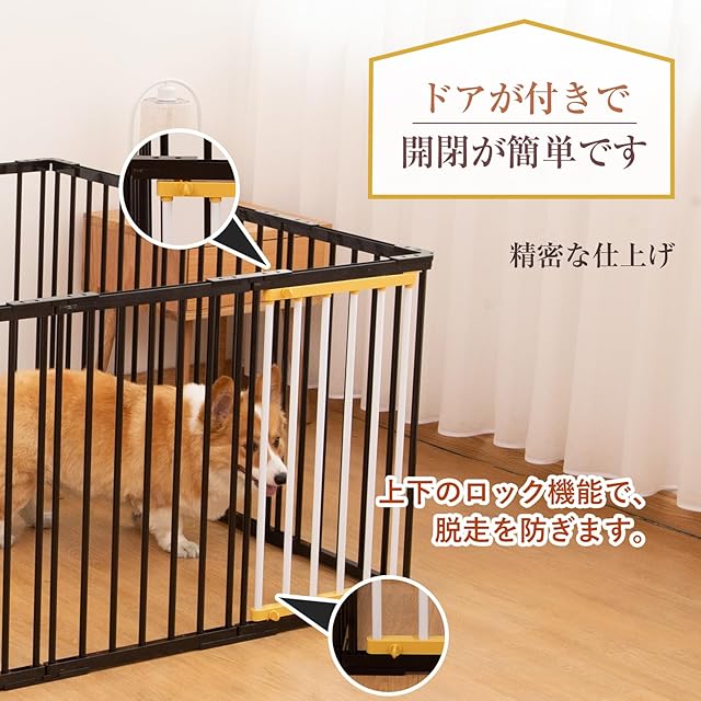 ユニークなデザイン:スペースに合わせてパネルを活かして、長方型、正方型、L字型などに変更できます。ペットに窮屈な思いをさせる事なく、日常のトイレ訓練やハウストレーニングに便利なペットサークルです。