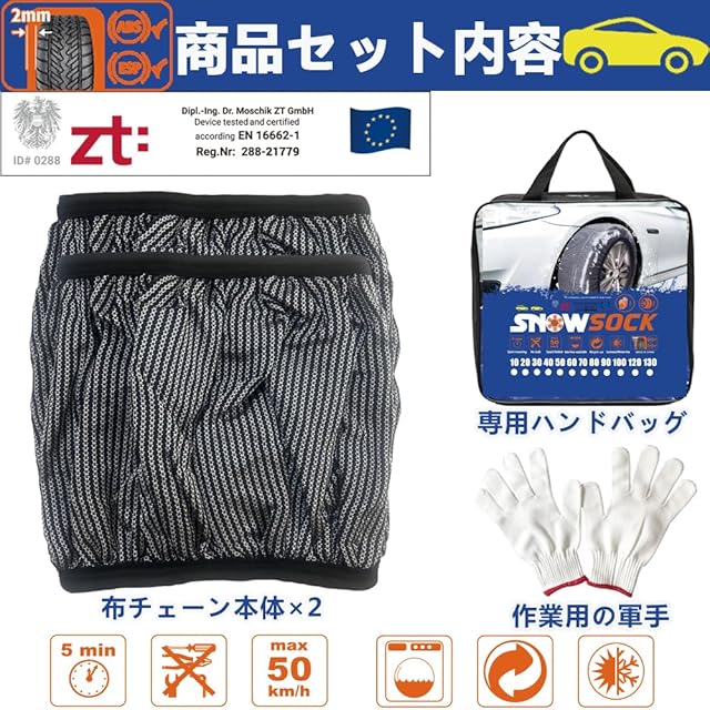 商品名:タイヤチェーン 布製 スノーソックス 軽自動車 布チェーン 非金属 乗用車スノーチェーン 装着簡単 工具不要 軽い コンパクト チェーン規制対応 冬 緊急用 突然の降雪対策 205/60R16 215/60R16 225/40R19 205/55R17 215/45R18 225/45R18 195/60R17 215/50R18 195/65R16 225/50R17適合 S080