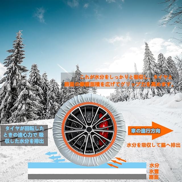 【接着地力UP】特殊構造が路面とがっちりグリップ。特殊な布の繊維が毛羽立っている状態で、雪面にしっかりと密着してくれて、タイヤのグリップ力を強めてくれるのです。ABS、ESP、および合金リムを損傷しません,車に損傷を与えるリスクがありません。