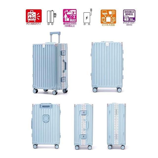 商品名:[Yuweijie] スーツケース アルミフレームタイプ キャリーケース 機内持込可 s/m/l/xlサイズ 3泊4日 多機能 バッグかけフック付き キャリーバッグ カップホルダー付き スマホホルダー付き 軽量大型 大容量 耐衝撃 人気 おしゃれ 静音 360度回転 ダブルキャスター 修学旅行 国内旅行 ビジネス 出張 ブルー 55l