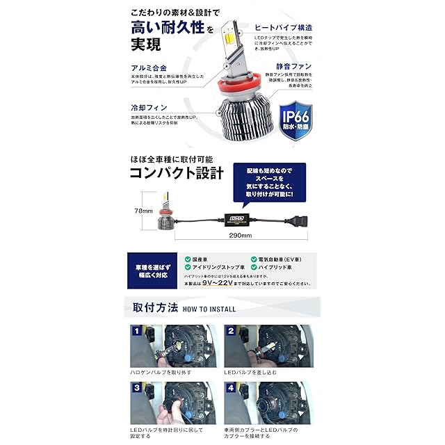 【熱に強く、常に安定した明るさ】高効率の静音冷却ファン、熱伝導率の高いヒートパイプ構造、耐久性の高いアルミ合金を組み合わせた独自の冷却システムを搭載。点灯5分後でも明るさがほぼ落ちない安定したパフォーマンスを実現し、長時間のドライブでも安心です。