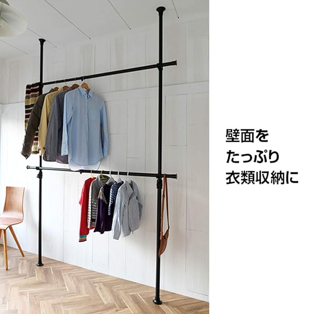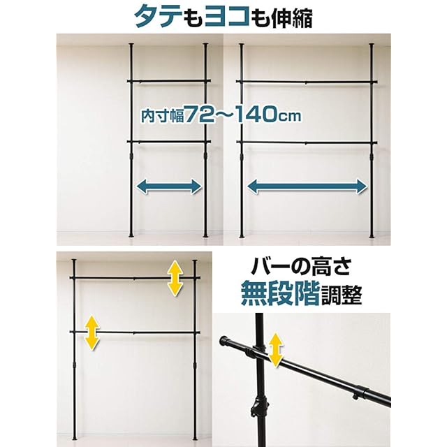 商品名:山善(YAMAZEN) 突っ張り ハンガーラック 大容量 衣類収納 幅166cm 高さ 縦横 伸縮 耐荷重60kg 布団も干せる かんたん突っ張り(実用新案取得済) 組立品 マットホワイト WJ-775M(MWH) ダブル