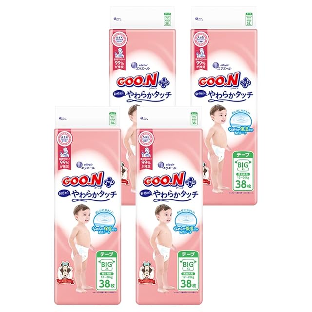【テープ BIGサイズ】グーンプラス 敏感肌にやわらかタッチ おむつ (12~20kg) 152枚(38枚×4) [ケース販売] (ディズニーデザイン)