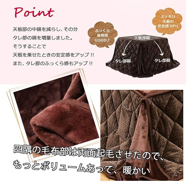 商品名:JEMAジェマ 省スペース こたつ布団 こたつ掛け布団 掛け布団単品 長方形 ふわふわ感触フランネル生地 ケーブル ブラウン 約160x190cm 洗える