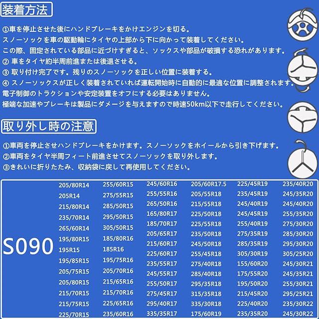 商品名:NIJOSTORE タイヤチェーン 布製 スノーソックス 軽自動車 布チェーン 非金属 乗用車スノーチェーン 装着簡単 工具不要 軽い コンパクト チェーン規制対応 冬 緊急用 突然の降雪対策 195/80R15 235/50R18 215/65R16 215/70R16 225/55R18 245/40R20 275/35R19適合 S090